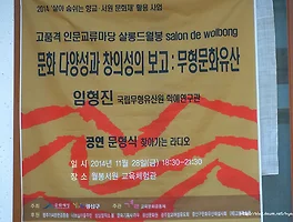 문화/살롱 드 월봉 (33) 썸네일형 리스트형 2014년 11월 살롱 드 월봉 고품격 인문교류마당 salon de wolbong mbc 별이 빛나는 밤에문화DJ 문형식의 '찾아가는 라디오' ♬ 사연과 함께 신청곡을 들려주는 형식 추억속으로... Sylvie Vartan의 La Maritza(마리짜 강변의추억)을 신청하신 가족 ******************************************************************************************************** 오늘의 이야기 손님국립무형유산원 임형진 학예연구관 문화 다양성과 창의성의 보고 '무형문화유산'에 대하여 2014 고봉문화제 <2편> - 2편 -고품격 문화살롱 - salon de wolbong 휴식타임 목욕중인 두 필과 물 밖의 두 필. 사람들의 행색은 중국풍이다. 윤두서의 말 그림은 그의 생전에도 중인들을 중심으로 가짜가 떠돌아 다닐 정도였다고. 이번 전시회에는 윤두서의 그림으로 추정되는 작품도 볼 수 있다. '낙마도'의 부분으로 말에서 떨어진 이가 윤두서 라는 의견도 있는데이 그림은 숙종이 직접 감상한 것으로 도화서에서 그렸을 거라는 평이 우세하다고. - 노승도 - - 나무 아래 노승도 - - 심득경 초상 - 윤두서가 그림 공부에 사용했던 수입서 '고씨화보' 공재가 직접 새긴 인장 들윤공 - 윤두서의 자화상 -1937년 당시에는 도포자락이 남아 있었다. 적외.. 2014 고봉문화제 <1편> 고품격 문화살롱 - salon de wolbong 氷月秋色 ******************************************************************************************* 강사 / 국립광주박물관 정명희 학예연구사 18~19세기 해남 녹우당은 하나의 거대한 전시관이었다.엄청난 양의 시대적 지식과 정보가 모여 있었다는 뜻이다. 회화 유물 전시는 빛, 습도 등 유물의 피로도를 고려 최대 3개월 전시 후 10개월 정도는 꼭 휴지기에 들어가야 한다.금번 전시회를 위해 20여 유관처로 부터 약 200여 점의 유물을 빌려왔다. 금번 전시회의 컨셉은 '과거와 현재의 소통'이다.전시회 관람은 .. 살롱 드 월봉 / 사랑, 그 먼 그리움 살롱드월봉과 푸른역사음악회가 함께 하는 이야기가 있는 콘서트 '사랑, 그 먼 그리움' 월봉서원 월봉서원 교육관 구월이 깊어가는 소리가 빨갛습니다.문득 고개들어 보니 하얀 구름이 섬을 이루고꽃무릇은 하염없이 피어납니다.월봉서원에 오르는 길은 가을빛으로 물들어갑니다.가끔은 그대가 되고 가끔은 내가 되어조용히 우리 삶을 어루만집니다.9월 살롱엔 서울에서 온 손님을 모십니다.'푸른역사음악회'에서 가을의 소리를 싣고살롱드월봉을 찾아오십니다.오시는 걸음 편히 옮겨오세요.살롱이 긑나는 시간,눈썹같은 초승달이 돌담길 위에 살포시앉아있겠지요. - 광산구 월봉서원 살롱 드 월봉 - 바리톤 송 현 상 연세대학교 음악대학 성악과 졸업 .. 2014 살롱 드 월봉 <제24회> 2014 '살아숨쉬는 향교 * 서원 문화재' 활용사업 -제24회- 고품격 인문교류마당 - salon de wolbong ● 주제 / 포임 오페라 peom opera 의 이해 강사 : 이 정 옥 (한국시가문학해설연구원) 공연 : 실내악단 '흘림' - 일시 : 2014년 7월 25(금) 오후 7시 - 10시 - 장소 : 월봉서원 교육체험관 - 주최 : 문화재청. 광주광역시 광산구 -.. <제22회> 살롱 드 월봉 Ⅲ -제22회- 고품격 인문교류마당 - salon de wolbong ● 주제 / 도예의 힘 Ⅲ 강사 : 三田 송 기 진 도예가 - 일시 : 2014년 4월 25(금) 오후 7시 - 10시 - 장소 : 월봉서원 교육체험관 _ 주최 : 문화재청. 광주광역시 광산구 - 주관 : 교육문화공동체 '결' - 후원 : 행주기씨문헌공종중, 너부실 마을 주민, 상상창작소, 문화기획사 라우, .. <제22회> 살롱 드 월봉 Ⅱ -제22회- 고품격 인문교류마당 - salon de wolbong ● 주제 / 도예의 힘 Ⅱ 강사 : 三田 송 기 진 도예가 - 일시 : 2014년 4월 25(금) 오후 7시 - 10시 - 장소 : 월봉서원 교육체험관 _ 주최 : 문화재청. 광주광역시 광산구 - 주관 : 교육문화공동체 '결' - 후원 : 행주기씨문헌공종중, 너부실 마을 주민, 상상창작소, 문화기획사 라우, .. <제22회> 살롱 드 월봉 Ⅰ -제22회- 고품격 인문교류마당 - salon de wolbong ● 주제 / 도예의 힘 Ⅰ 강사 : 三田 송 기 진 도예가 - 일시 : 2014년 4월 25(금) 오후 7시 - 10시 - 장소 : 월봉서원 교육체험관 _ 주최 : 문화재청. 광주광역시 광산구 - 주관 : 교육문화공동체 '결' - 후원 : 행주기씨문헌공종중, 너부실 마을 주민, 상상창작소, 문화기획사 라우, .. 이전 1 2 3 4 5 다음